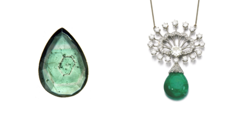After: Our gemmologists carefully sourced a replacement emerald that matched the original in colour, clarity, and carat weight. The new emerald was expertly set, and the pendant was restored to its former glory, preserving its sentimental value and beauty.